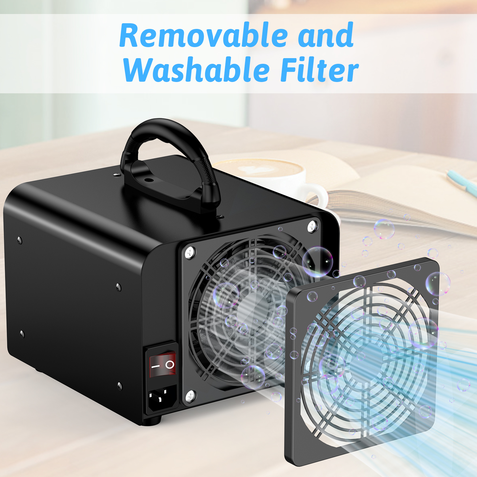 FAST ELIMINATES: With its own powerful fan, the ozone generator effectively distributes ozone throughout the room, swiftly reacting with pollutants and swiftly converting them into fresh oxygen. This creates a naturally refreshing atmosphere for you and your family, ensuring a home full of natural freshness.