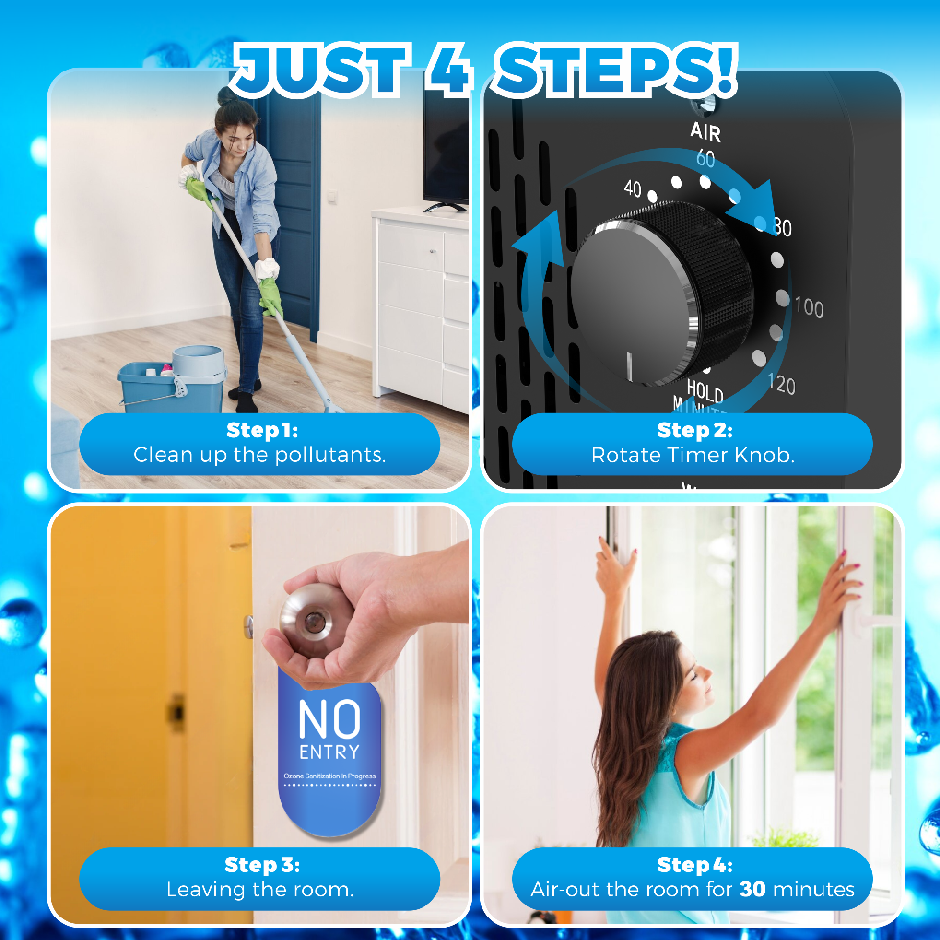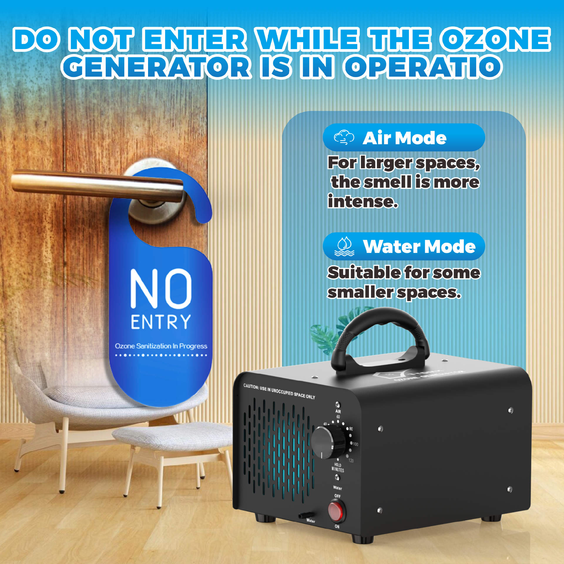 EASY TO USE: Just turn the timing knob of the ozone water machine to set the ozone generation time and leave the room, these odors are neutralized, leaving behind a clean and fresh-smelling environment. The ozone generator will automatically stop working when the time is up. Ventilate for at least 30 minutes after ozone generation ends.